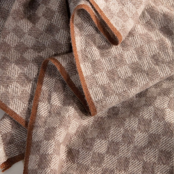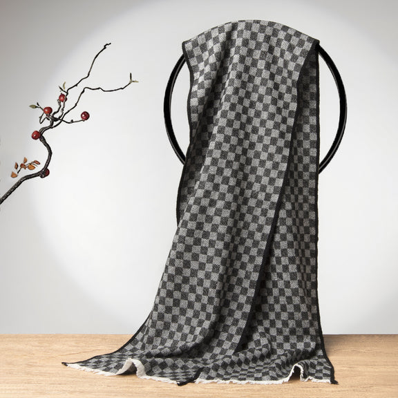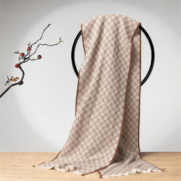 Our scarf features a classic checkered pattern, combining style with elegance. Made from 100% cashmere, it offers a luxurious texture and a soft, skin-friendly feel. Elevate your presence and showcase your impeccable taste at any occasion.
