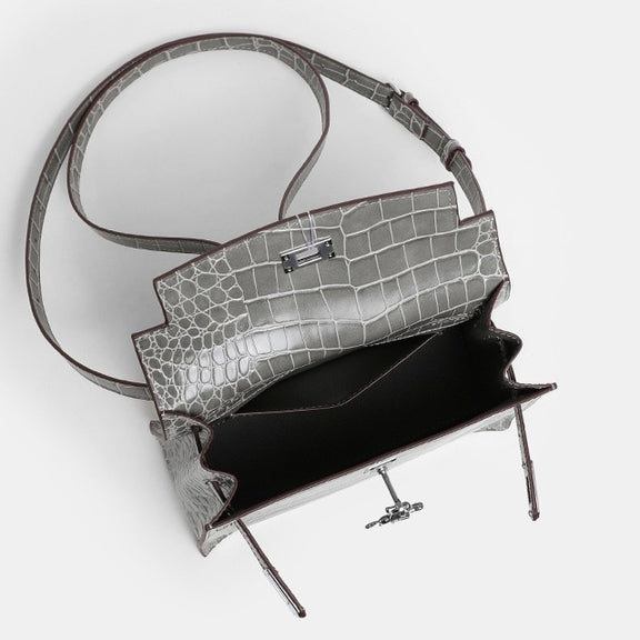 Make a bold statement with our crocodile-embossed mini bag, crafted from high-quality split leather.