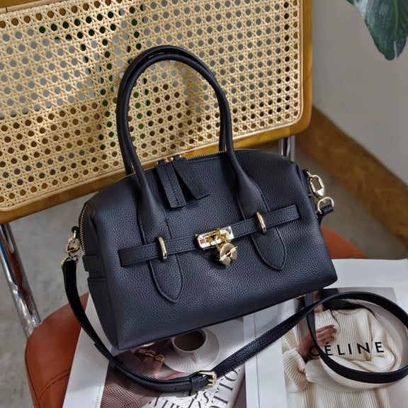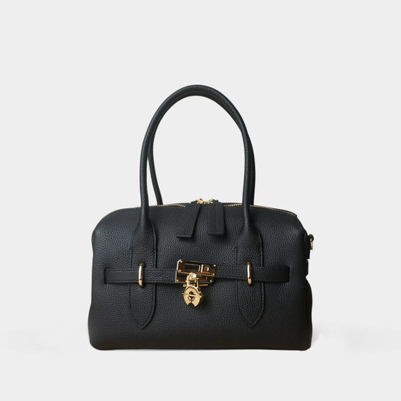 Crafted from supple Togo leather, this Boston bag features a distinctive circular lock design that adds a touch of elegance to its clean silhouette. The fine-grained leather grows smoother and more lustrous over time, revealing its natural patina with every use — a true reflection of timeless quality and understated sophistication.