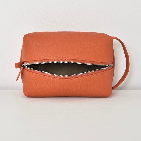 This makeup bag is exquisitely crafted from premium Togo soft leather, boasting a sleek minimalist design that blends elegance with functionality. Meticulously constructed for both durability and convenience, it features a generous capacity that effortlessly accommodates daily essentials—whether you’re heading out for a shopping spree or packing for a trip. Every stitch and detail reflects exceptional craftsmanship, highlighting its superior quality and timeless appeal.