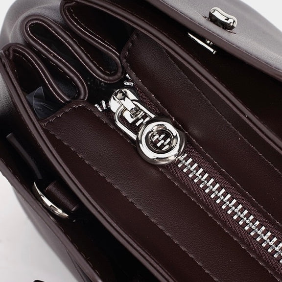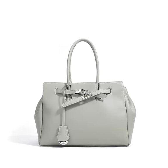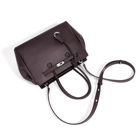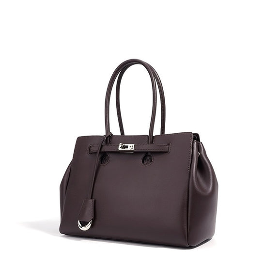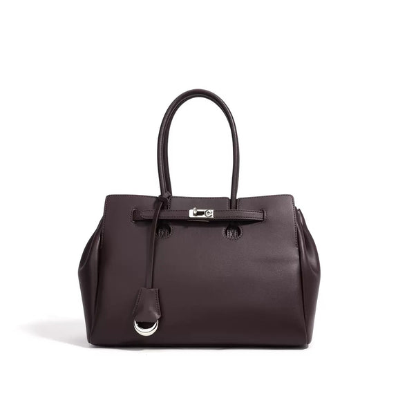 Crafted from high-quality split leather derived from genuine cowhide, this bag features leather that feels soft, delicate, plump yet resilient—durable and aesthetically pleasing. The hardware, with rich color and textured finish, adds a luxurious touch. Its stylish, three-dimensional shape, large capacity, and well-organized compartments ensure neat storage and easy access. Boasting a classic design, clean lines, and natural silhouette, it exudes understated charm, perfectly blending simplicity and sophistication.