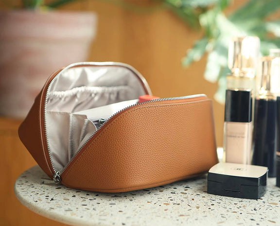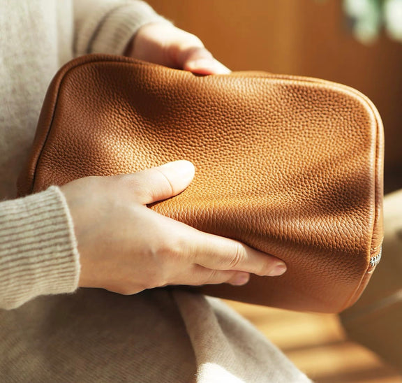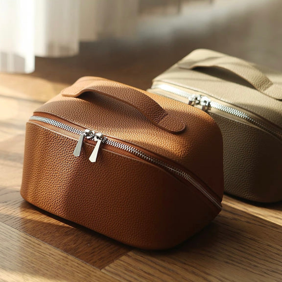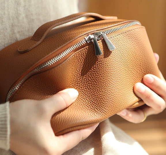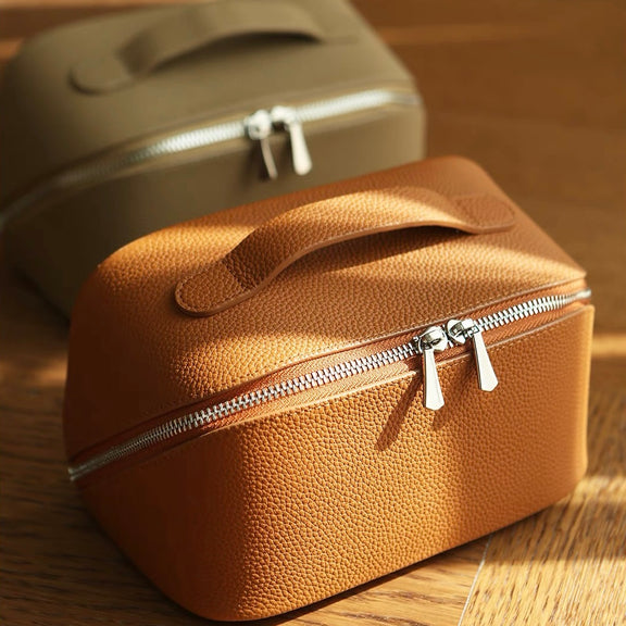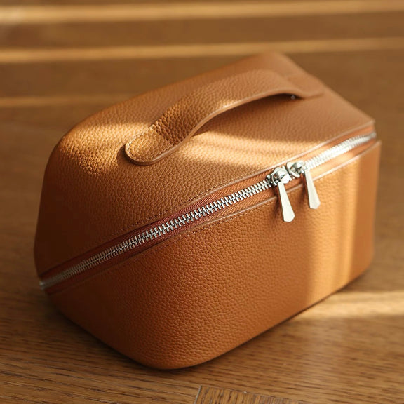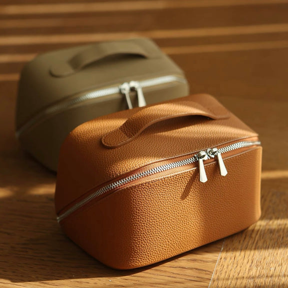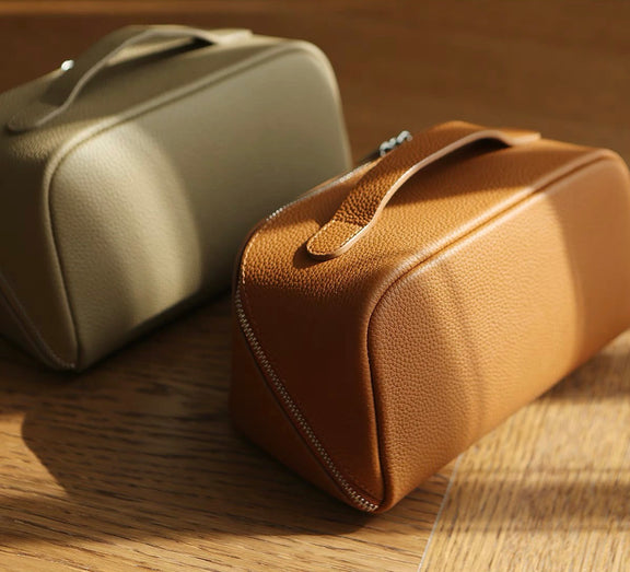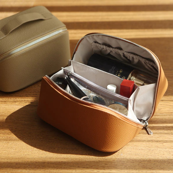 This makeup bag is crafted from premium TOGO cowhide leather, known for its luxurious texture and durability. The high-quality material not only adds a sophisticated touch but also ensures long-lasting use. It features multiple compartments inside, providing ample space to store your daily essentials. Perfect for both everyday use and travel, this stylish bag is designed for convenience and elegance. Whether at home or on the go, it keeps your cosmetics organized and easily accessible.